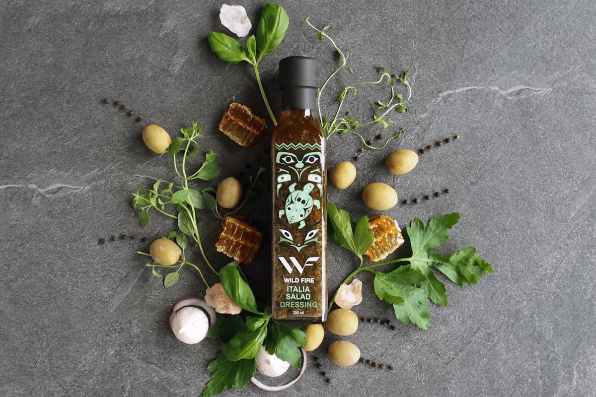 Her har vi noe så unikt som en Matcompaniet co-lab. Alessandro Anfosso sin Tumai olje har fått lov til å spille på lag med både rød- og hvitvinseddik, fersk hvitløk, havsalt og mange herlige krydder slik som oregano, basilikum og persille. Resultatet er en balansert og spennende salatdressing til alle typer salater. Den er også perfekt for å dyppe brød i.